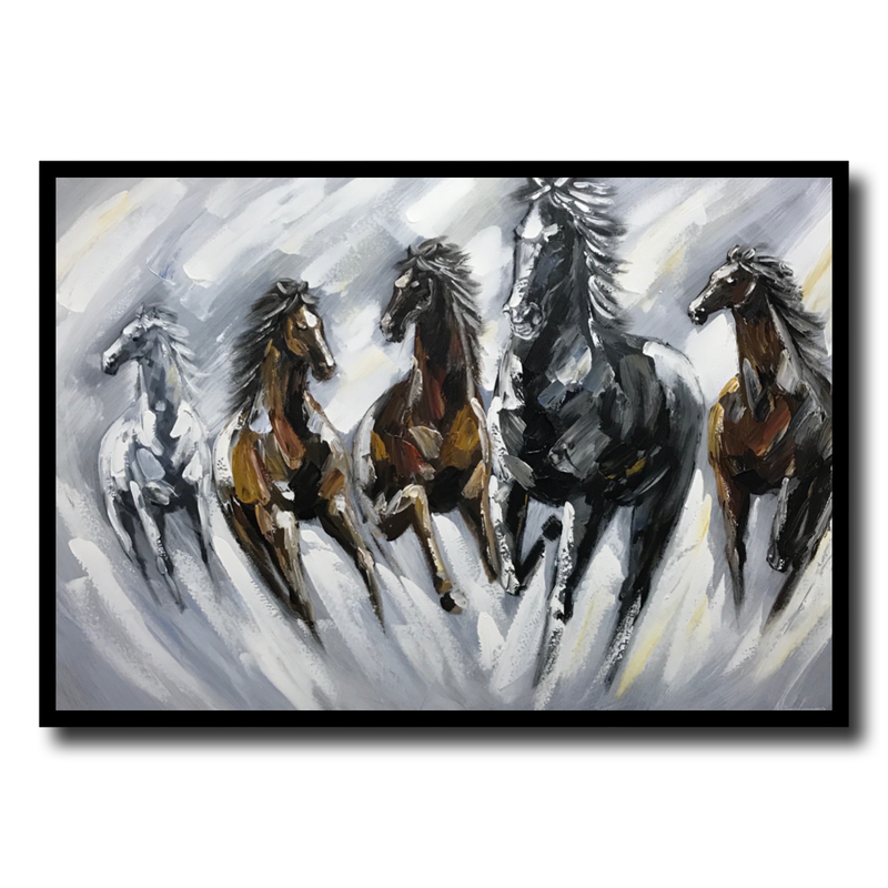 En stilren tavla med fem skenande vilda hästar. Tavlor med hästar ger en känsla utav energi och kraft.