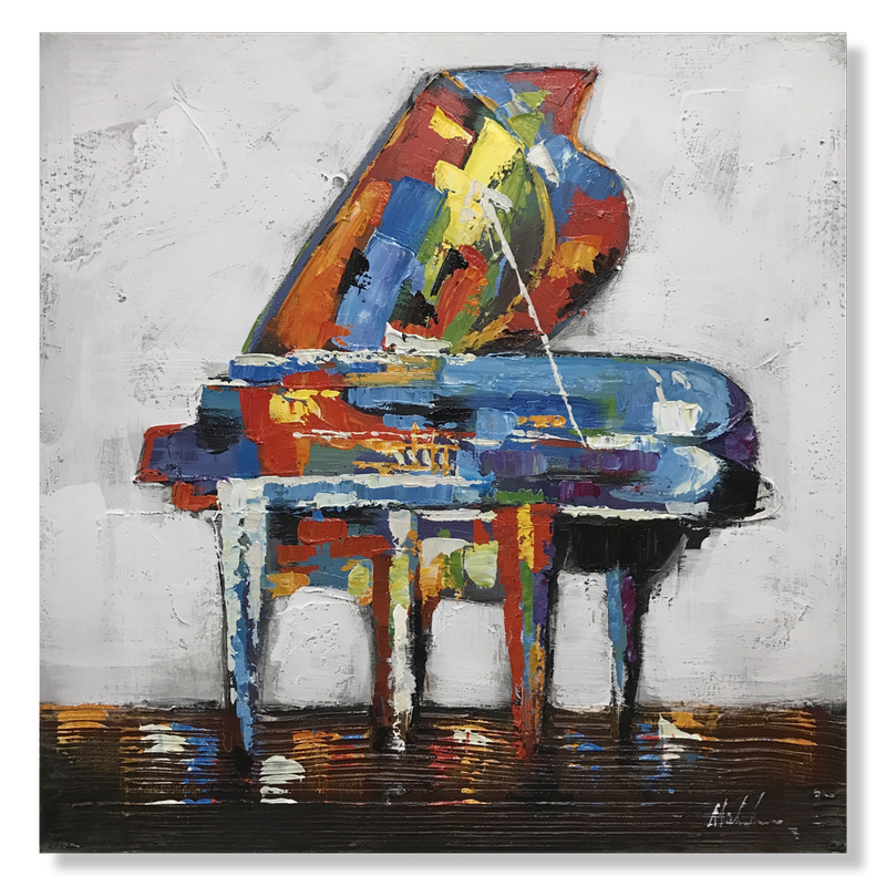 Här är en färgglad målning utav en liten flygel, tavlor med musikinstrument är väldigt populärt bland många som älskar konst och som gillar att pryda väggarna med unika tavlor.