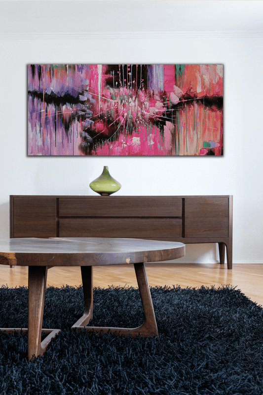 Med den här abstrakta tavlan som liknar en färgbomb i rosa så har konstnären låtit sig inspireras utav det vackra i att inte direkt skildra den yttre verkligheten. Att använda sig utav den här fantasifulla och lekfulla stilen för att skapa abstrakt konst när man målar har alltid varit populärt både hos konstnärer och konstälskare. Med hjälp utav en färgexplosion, cirklar eller kuber som motiv i en akrylmålning eller oljemålning kan man lätt skapa snarlika former utav ett flertal välkända objekt, utan att avbilda dem i detalj på målarduken. Mystiken och nyckfullheten i ett abstrakt konstverk kan också väcka nyfikenhet och känslor hos betraktaren. Modern konst är ett enkelt sätt att få fantasin att leka medan man egentligen bara kanske står och tittar djupt in i en tavla. Även en salig blandning utav kladdiga färger eller bara svartvita tavlor kan bli ett härligt motiv i en målning som många tycker är fascinerande att ha som konst på väggen.